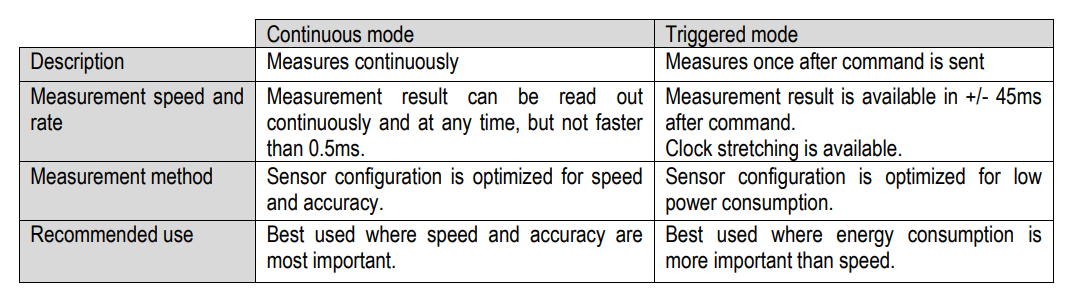 Note: In this sensor the temperature data is always communicated too, regardless of the measurement mode. But if the application doesn’t need that data, we’ll just not send it.